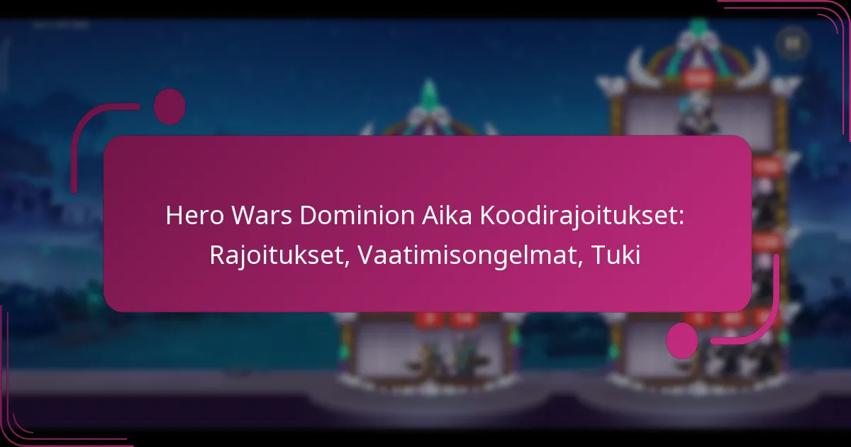 Hero Wars Dominion Era -koodit tarjoavat jännittäviä palkintoja, mutta pelaajien on navigoitava erilaisissa rajoituksissa, kuten käyttörajoituksissa, vanhenemispäivissä ja maantieteellisissä kelpoisuusvaatimuksissa. Näiden tekijöiden tunteminen on ratkaisevan tärkeää, jotta pelaajat voivat maksimoida näiden koodien hyödyt ja välttää ongelmat. Yleisiä ongelmia, kuten vanhentuneet koodit tai syöttövirheet, voidaan usein ratkaista järjestelmällisellä vianetsintämenetelmällä. Mitkä ovat Hero Wars Dominion Era -koodien […]